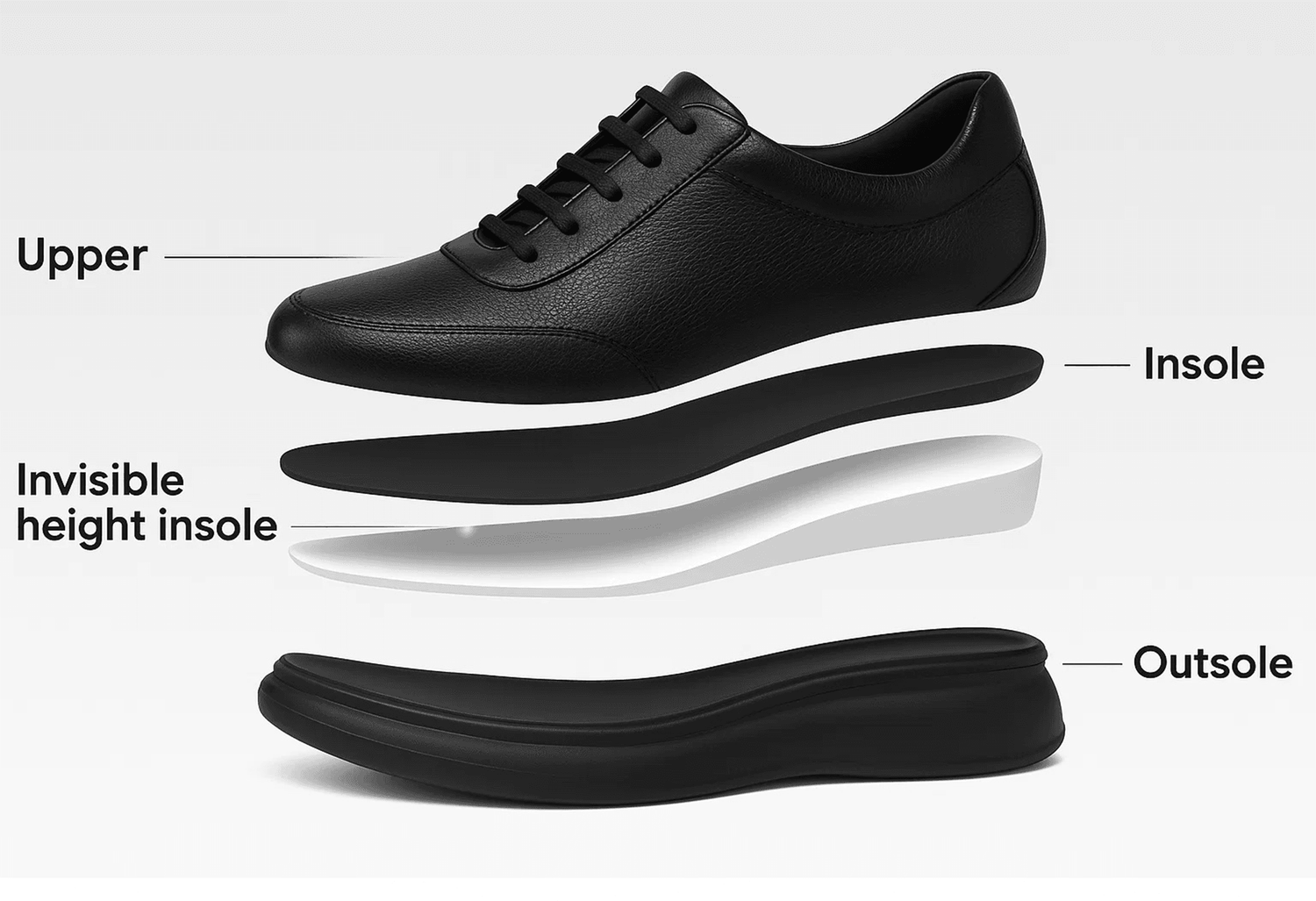 Built-in hidden increase insoles, not simply put in. This results in much more stability, and discreetness. No more insole struggle. Just highly specialized durable footwear.