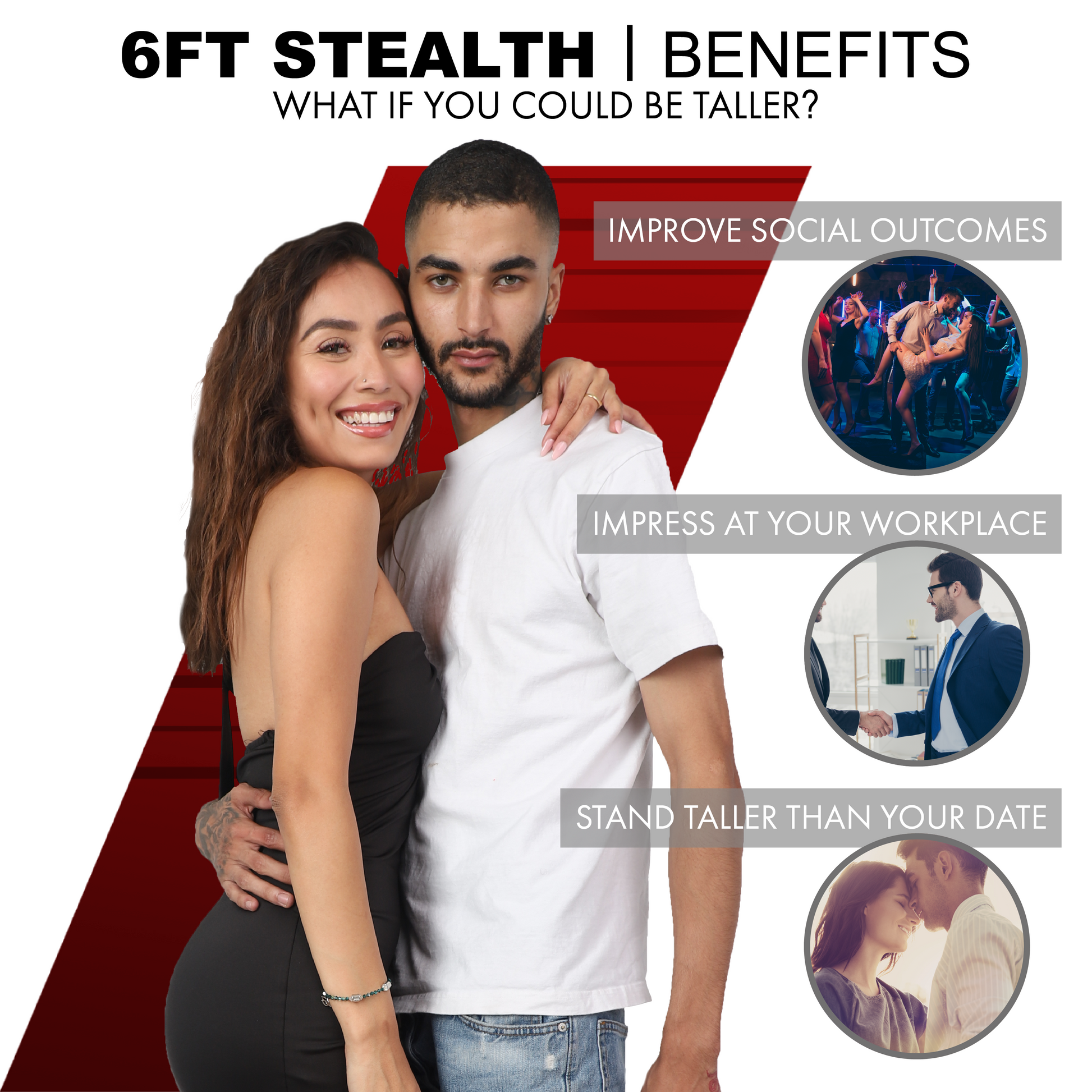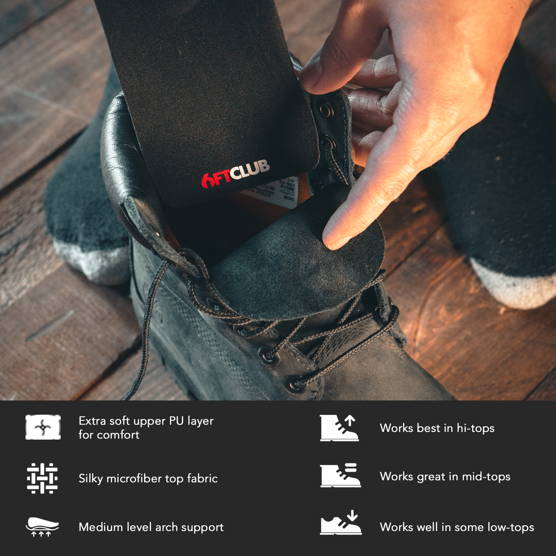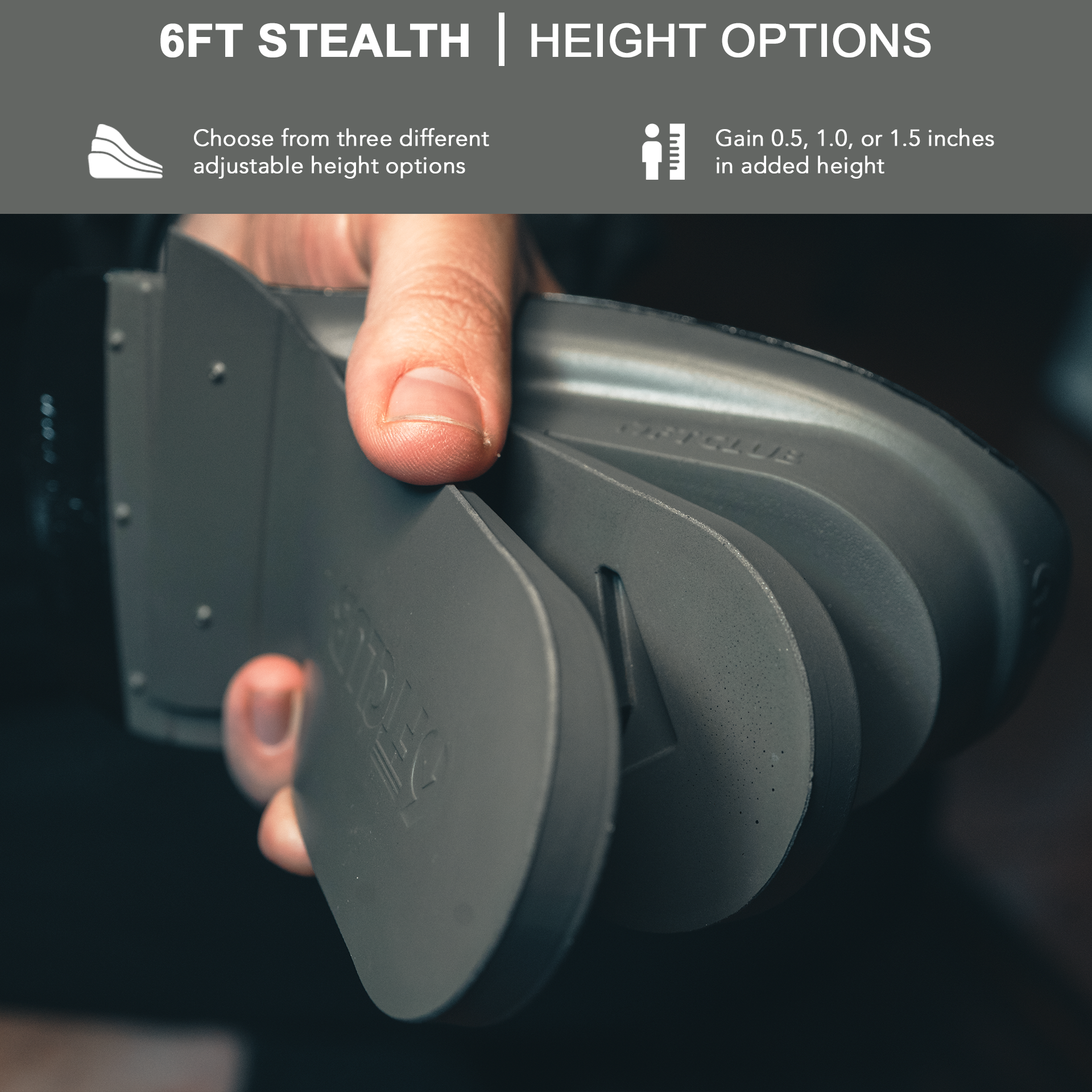 Elevate your confidence with 6FT CLUB's adjustable insoles. Add 1 inch, 2 inches, or 2.5 inches in height.