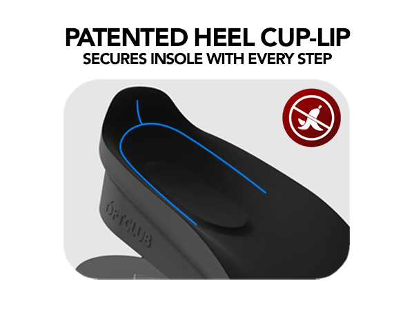 Patented design with three customizable layers to prevent insole movement. Extended air bubble for shock absorption. Traction rivets on forefront to prevent sliding.