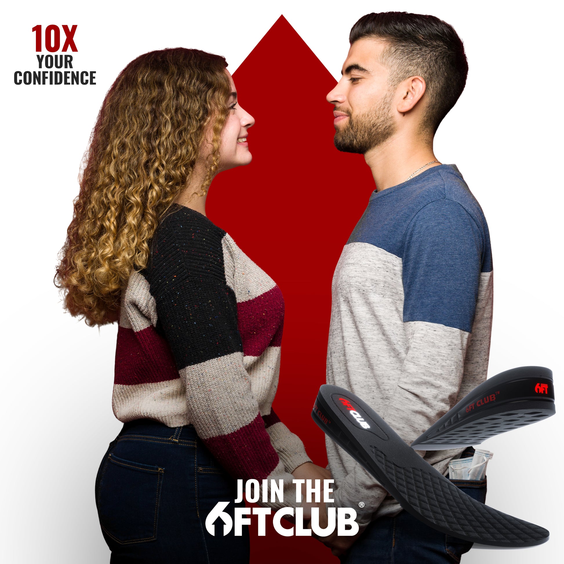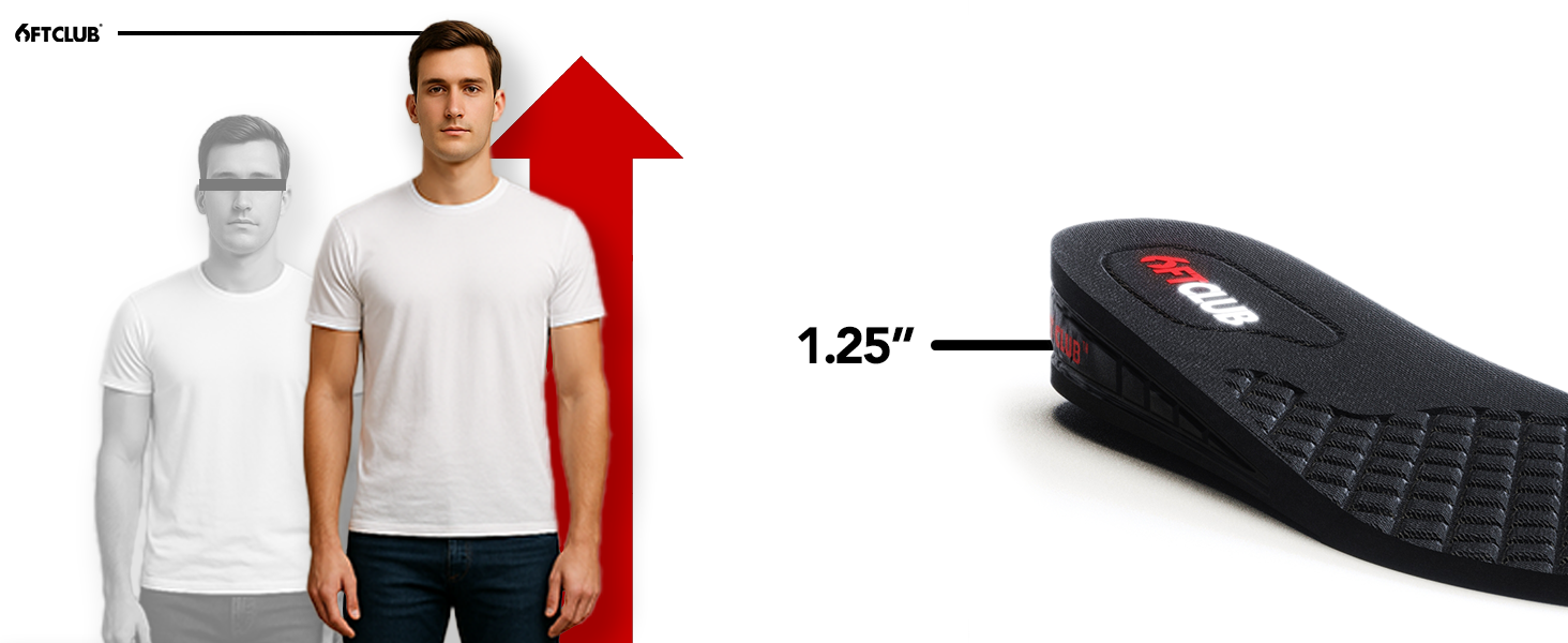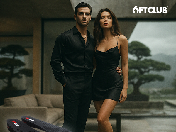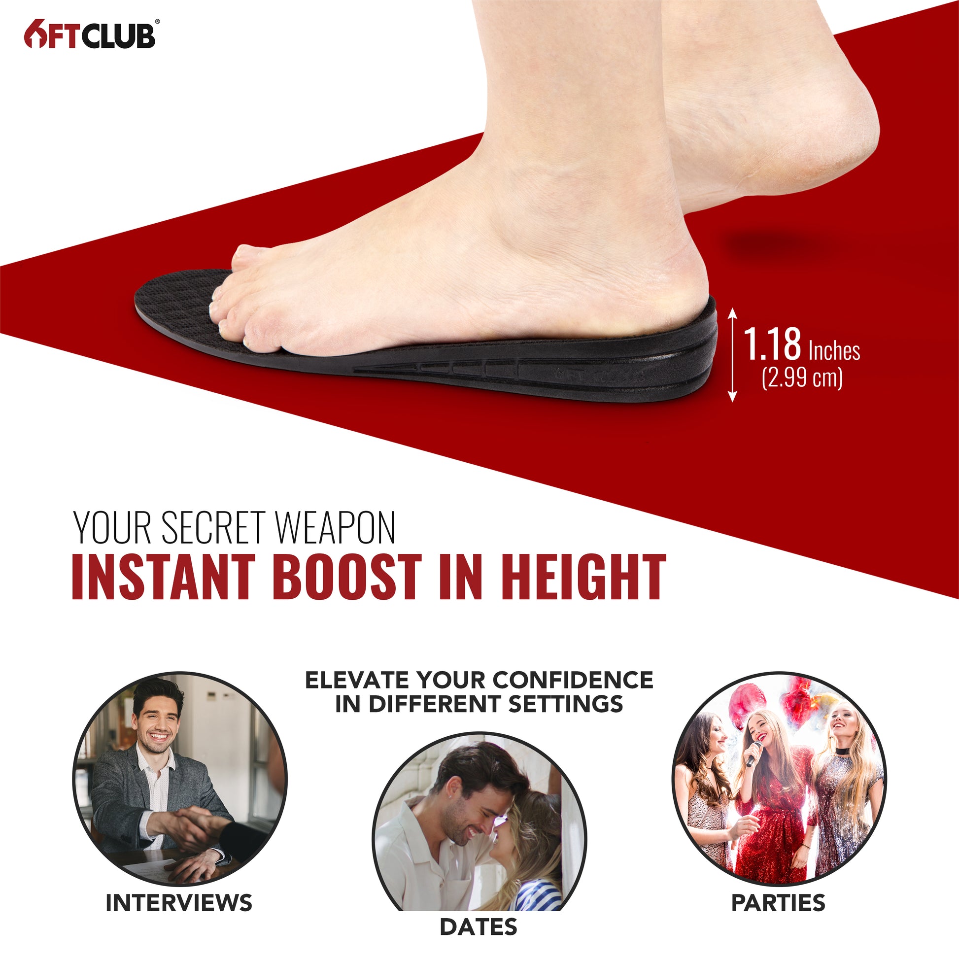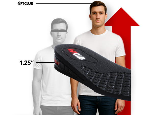 Elevate your confidence with 6FT CLUB's adjustable insoles. Add 1 inch, 2 inches, or 2.5 inches in height.