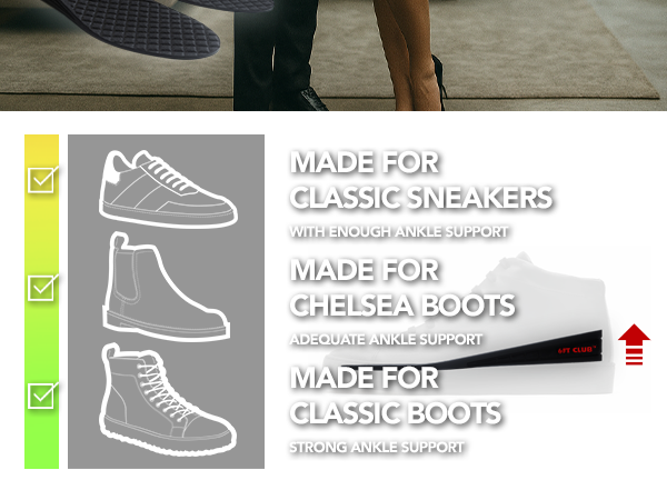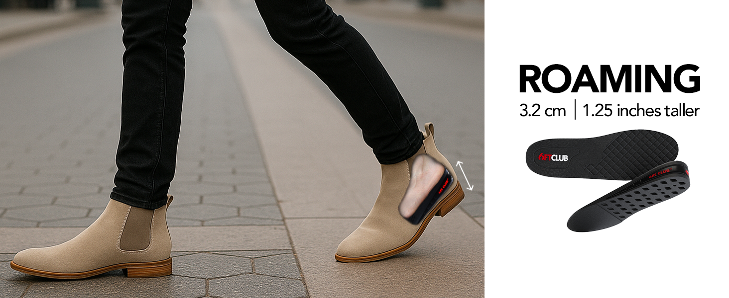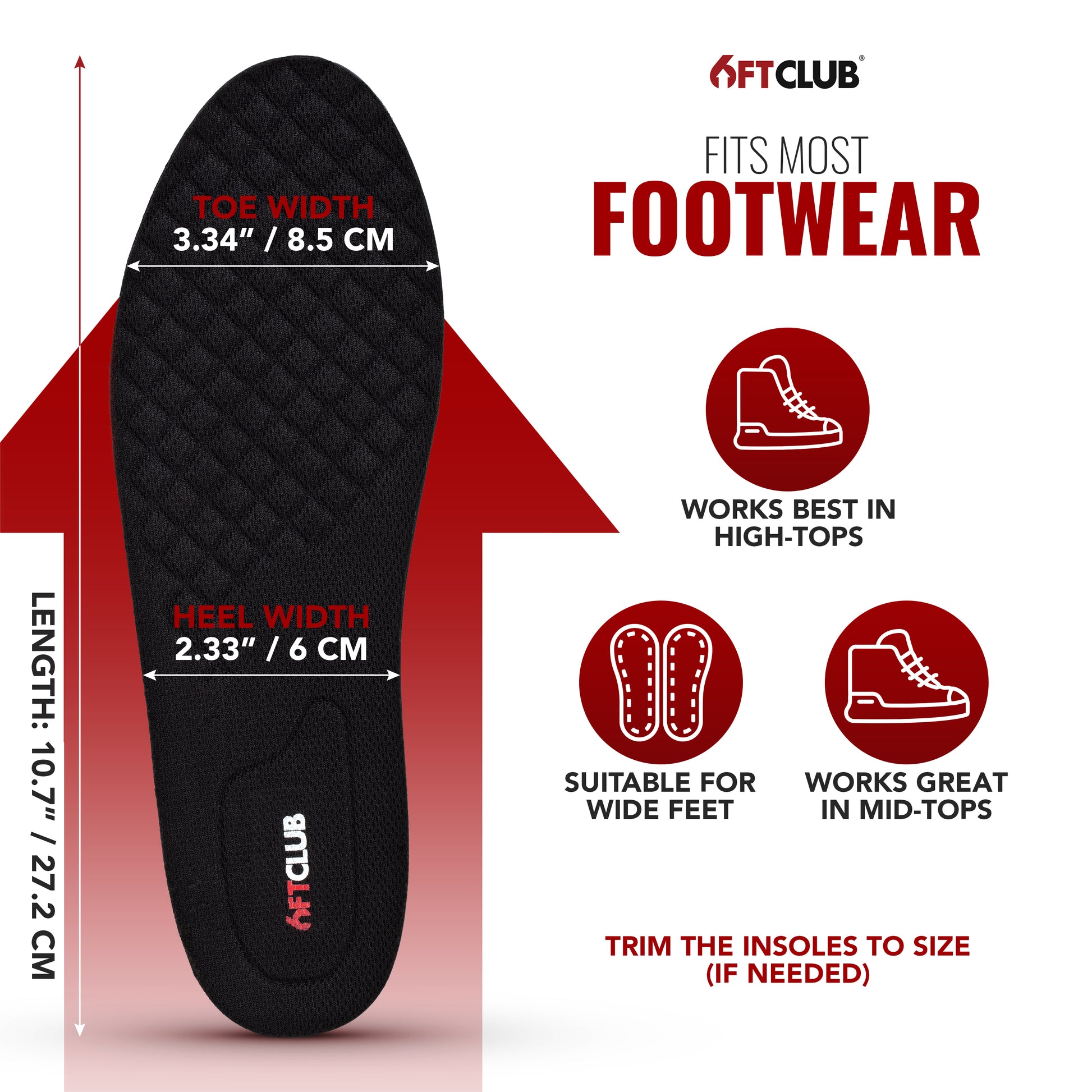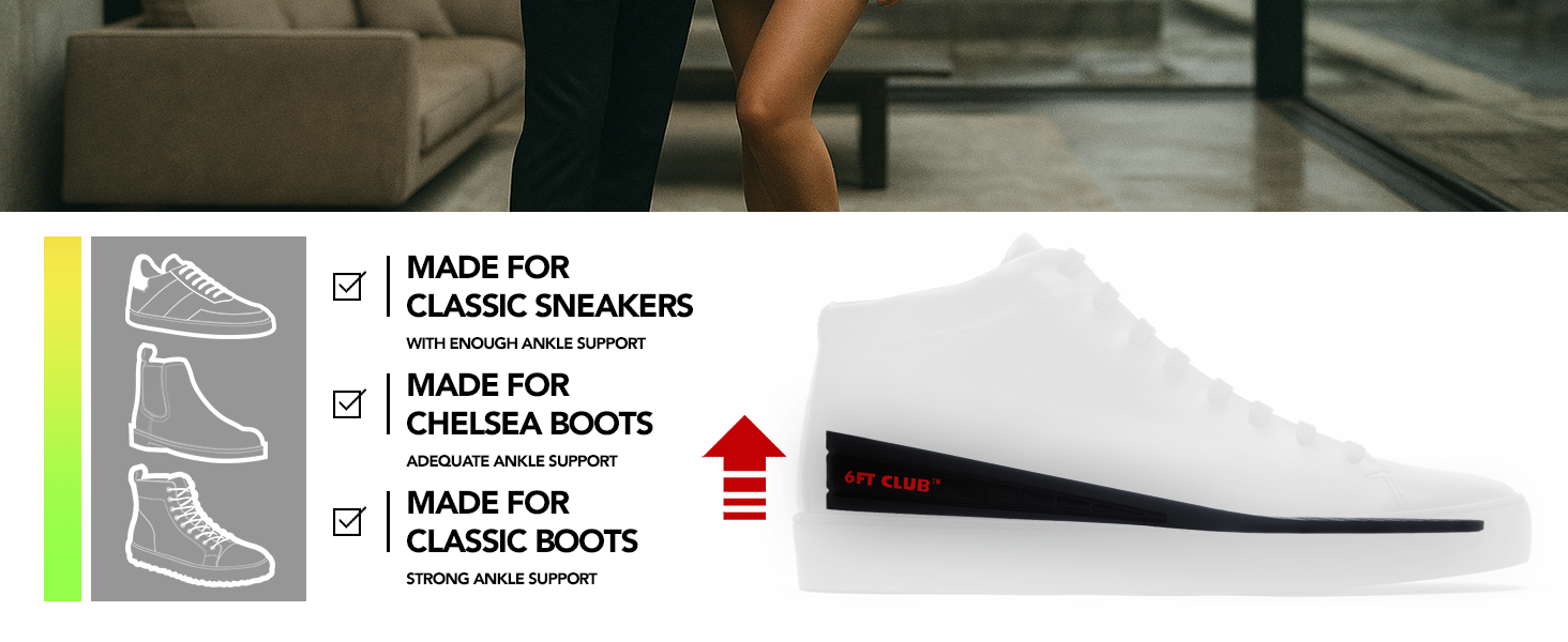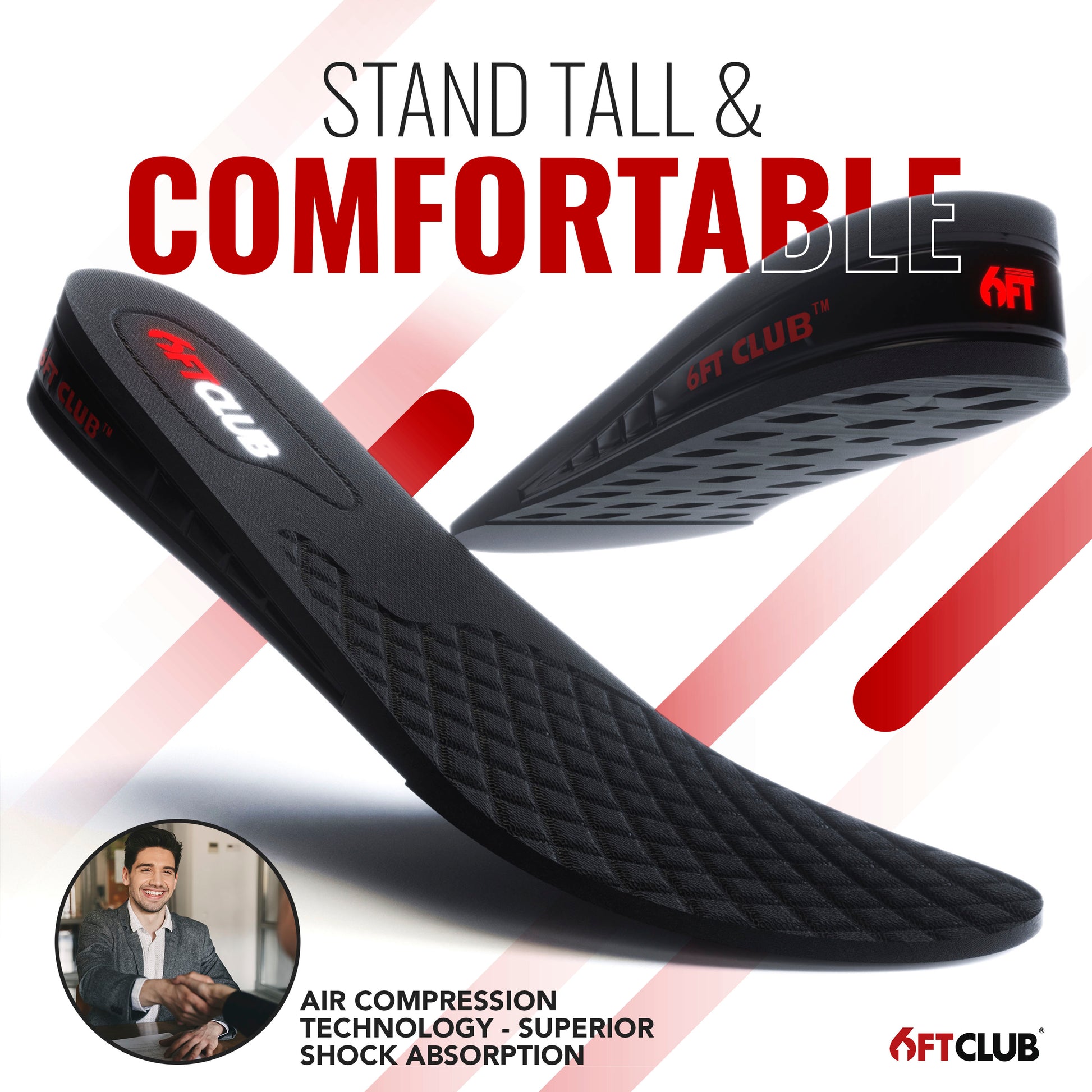 Elevate your confidence with 6FT CLUB's adjustable insoles. Add 1 inch, 2 inches, or 2.5 inches in height.