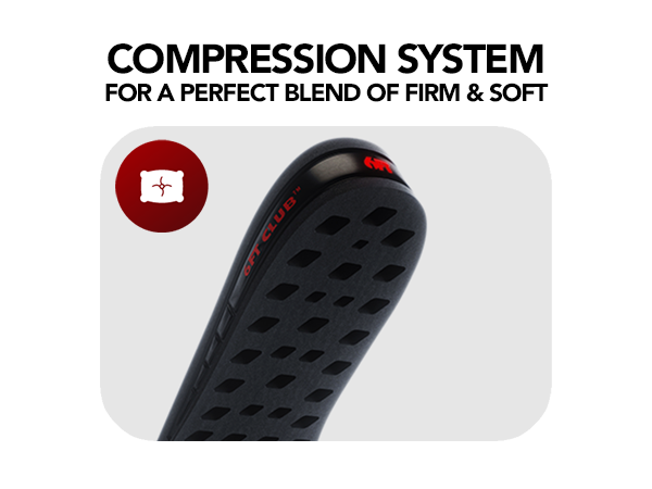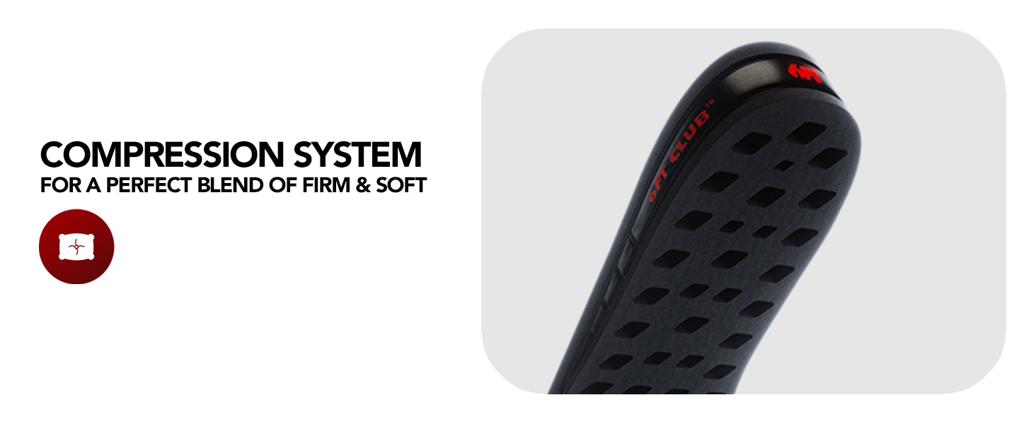 Patented design with three customizable layers to prevent insole movement. Extended air bubble for shock absorption. Traction rivets on forefront to prevent sliding.
